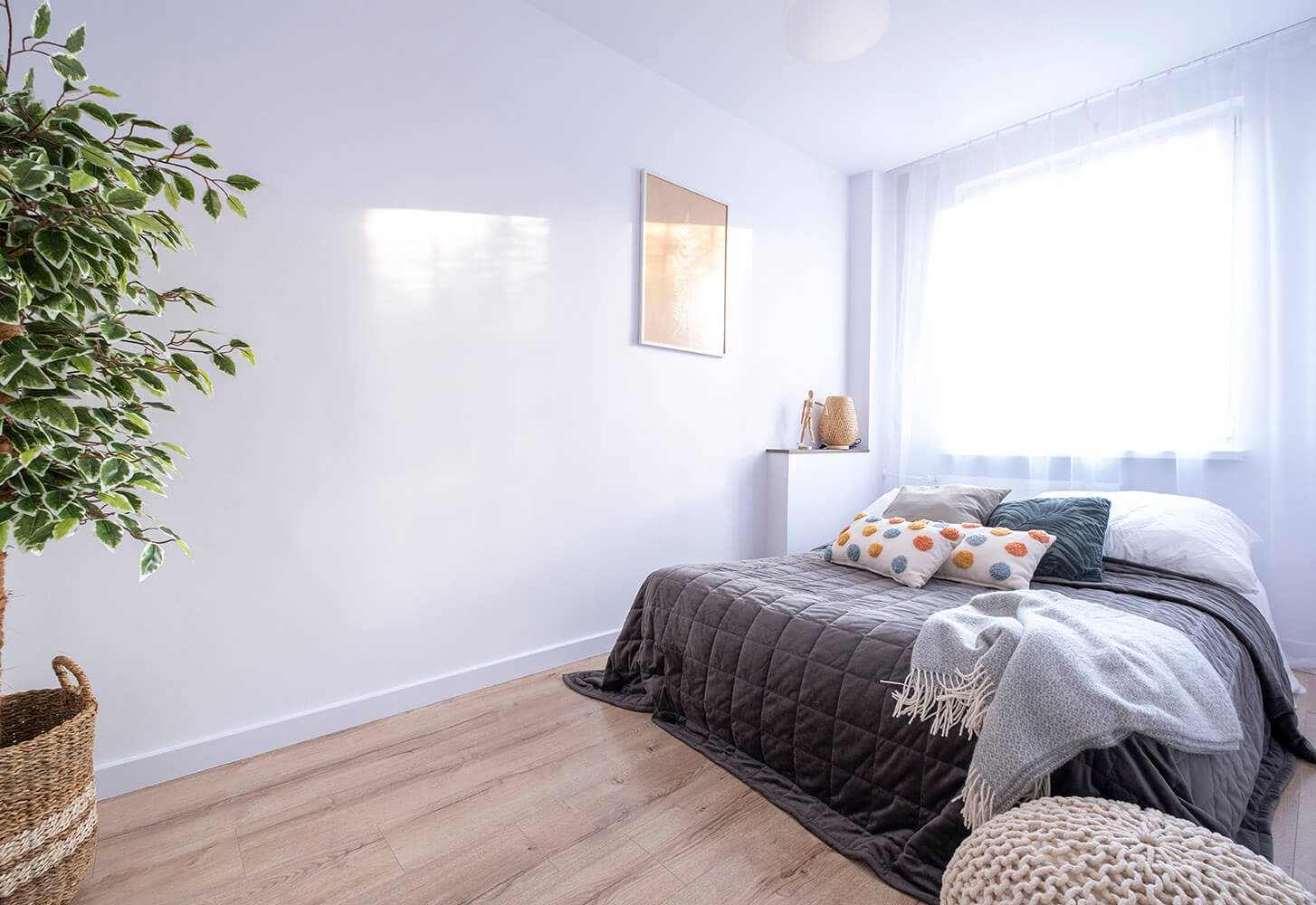 W pokoju mamy miejsce na dwuosobowe łóżko, szafę, zmieści się również biurko lub toaletka.