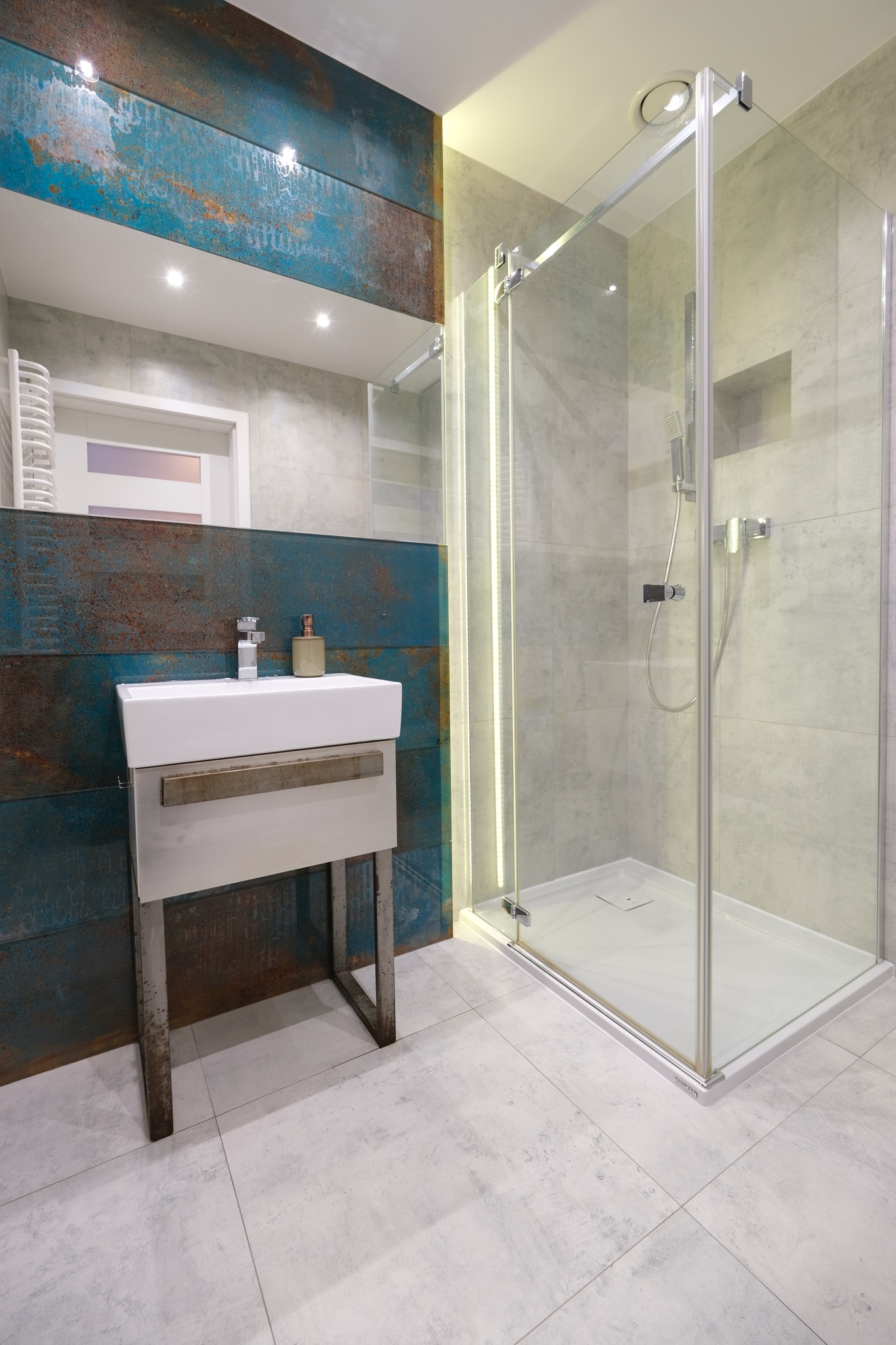 Dodatkowo w mieszkaniu mamy osobną sypialnię z dużą szafą w zabudowie. Wnętrze ozdabiają dekoracyjne lamele oraz niebanalne oświetlenie. Na oknach zamontowane rolety Fakro izolujące ciepło.