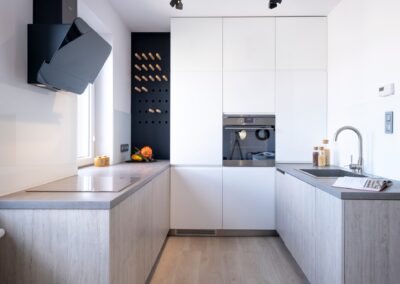 Kuchnia sprawdzi się dla tych, którzy lubią gotować – duża ilość szuflad, szafek oraz blatu roboczego z pewnością spodoba się każdemu.
