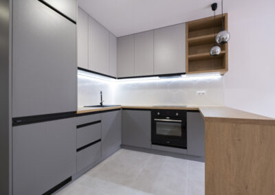 Mieszkanie idealne dla rodziny. Zamieszkaj na Os. Niepodległości. Na 45 m2 znajdziemy dwie sypialnie, strefę dzienną z kuchnią oraz łazienkę. W mniejszym pokoju zaprojektowaliśmy dziecięcą sypialnię, jednak można go zaadaptować również pod garderobę czy biuro.