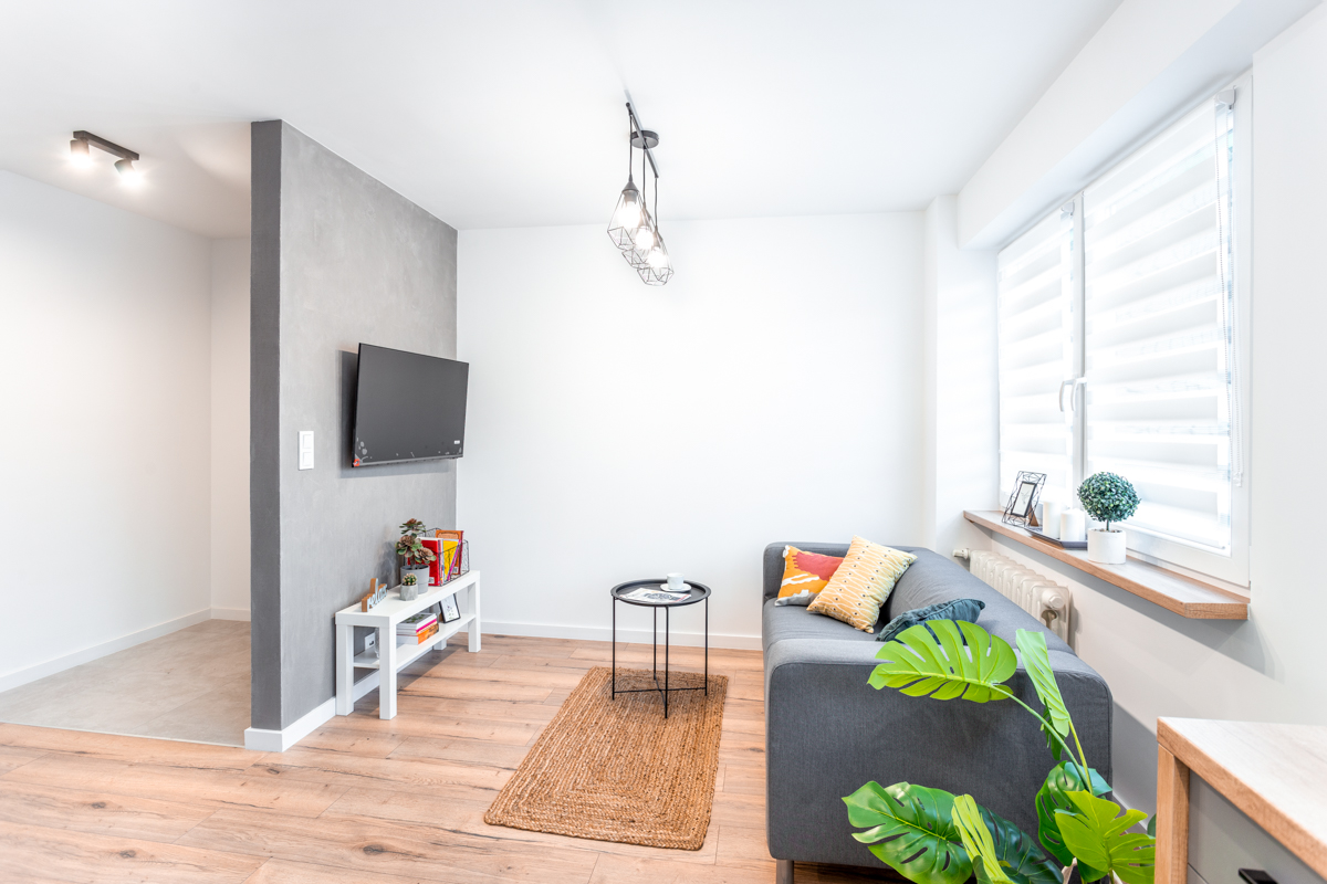 Jak we wszystkich naszych mieszkaniach został przeprowadzony gruntowny remont – wymieniliśmy wszystkie instalacje: elektryczną oraz wod-kan na nowe. Zostały wyrównane podłogi na całej powierzchni, a ściany pokryte nowymi tynkami i farbami.
