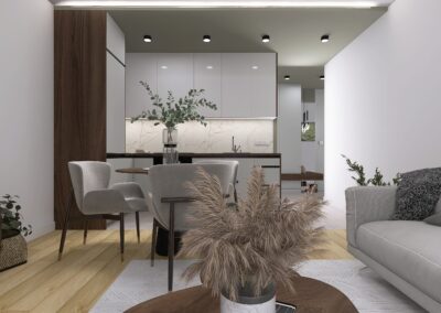 W mieszkaniu rozpoczął się generalny remont w trakcie którego wymienimy jak zwykle wszystkie niezbędne instalacje, okładziny ścienne i podłogowe. W końcowym etapie prac – mieszkanie zostanie wyposażone w meble na wymiar wykonane przez naszego zaufanego stolarza a także sprzęt AGD.